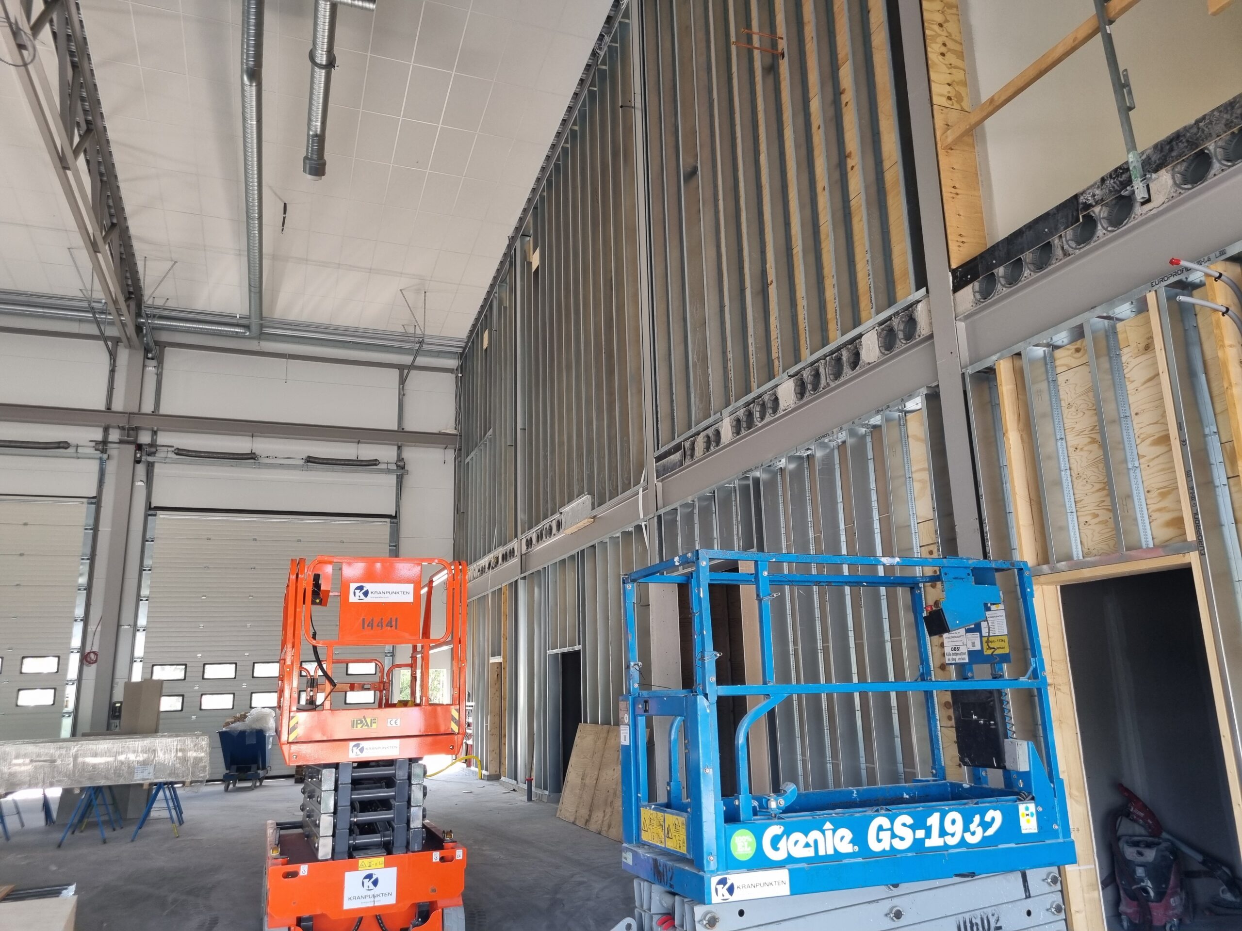 Nybyggnad Lantmännen Maskin i Växjö. Total yta om cirka 2880 kvm. Våra arbeten : 2100 m2 Innerväggar